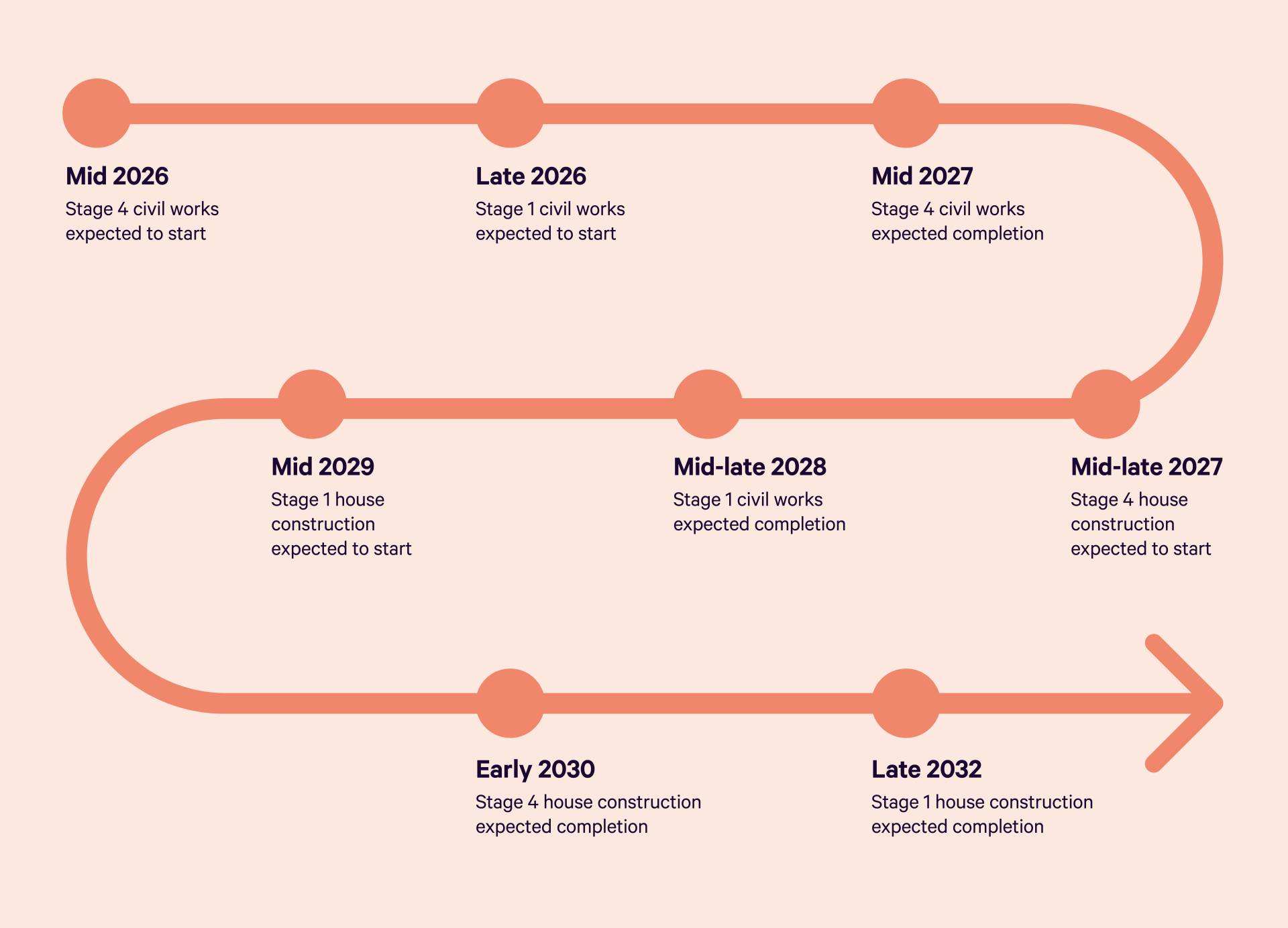 Stage 4 new homes: expected to start mid-late 2027, with completion around early 2030.